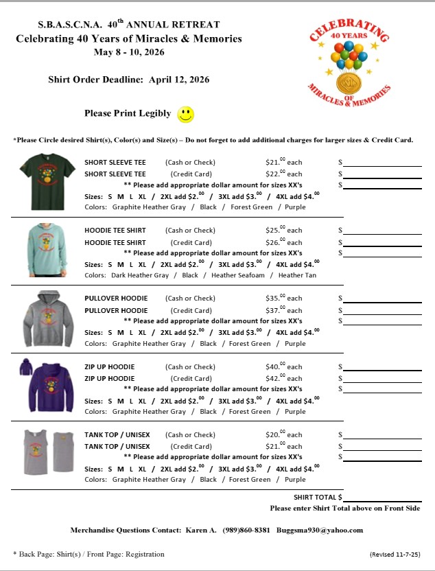 Newcomer Event Fundraiser Feb 28 St. Patrick’s Day Dance March 14 Just Stay WTMTE Meeting Friday Night 40 Annual Retreat Registration 40 Annual Retreat Registration
